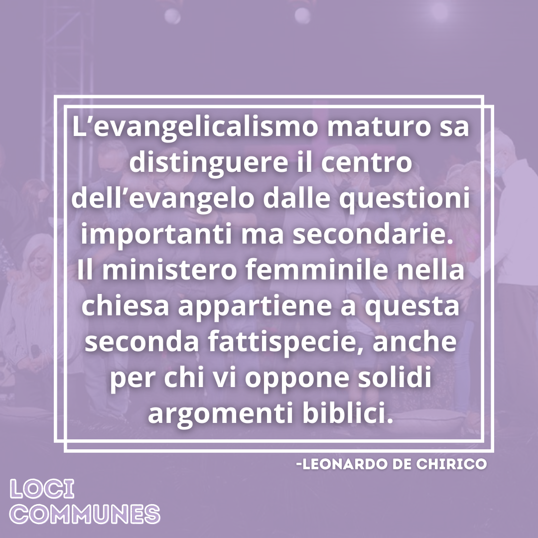 Non è questa la sede per entrare nel dibattito sulla legittimità biblica del pastorato femminile. Le “Tesine sul ministero femminile” (1984)[1] bene riassumono i contorni dell’insegnamento biblico così come è stato recepito storicamente dalle chiese evangeliche: