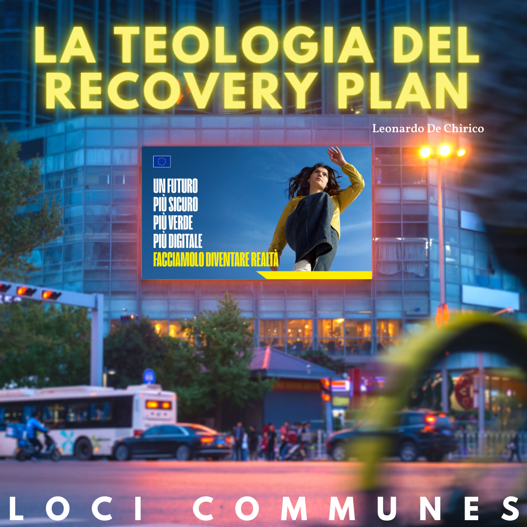 Ciò che dà a riflettere del Recovery Plan è la sua narrazione “salvifica”, quasi “messianica”, direi pure la sua teologia senza Dio ma al servizio degli idoli. Dopo decenni di crisi economica e sociale esacerbati dal Covid, ecco un piano di salvezza secolare, messo in campo da un attore politico più grande di noi e distante da noi, che ci dice cosa veramente vale nella vita e che ci dà gli strumenti per ottenerlo: essere sicuri, al riparo dalle paure, allontanando la malattia e la morte; coltivare una sorta di trascendenza dell’ambiente dentro cui trovare il nostro posto e avere un smartphone in mano con cui fare tutto, se non proprio “essere” noi con e in esso. Di questo “piano” noi dobbiamo diventare “missionari”, ricevendo i suoi benefici e trasformandolo in realtà per noi e per le generazioni successive. Chi paga tutto ciò? L’Europa certo.